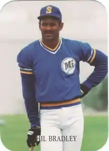 Philip Poole Bradley (born March 11, 1959), is an American former professional baseball outfielder / designated hitter who played in Major League Baseball (MLB) for the American League (AL) Seattle Mariners, Baltimore Orioles, and Chicago White Sox, and National League (NL) Philadelphia Phillies, from 1983 to 1990. He also played in Nippon Professional Baseball (NPB) for the Yomiuri Giants, in 1991.