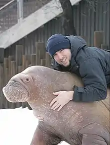 Demers' animal training career began in 2000 at MarineLand where he was employed until August 2012.[1] In 2007, Demers became the focus of mass media attention regarding his unique relationship with a captive Pacific walrus named Smooshi.[2] Their relationship garnered the attention of such television programs as CBC's The National, Inside Edition,[3] and Jimmy Kimmel Live!. Demers left his position at Marineland citing allegations of negligent treatment of the animals and unhealthy conditions.[4][5] As of fall 2015, Marineland continued to pursue legal action against Demers and other former employees who had claimed deleterious conditions at Marineland.[6]