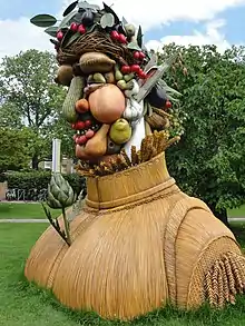 Retrospectives of his art films have been held at the Tate Gallery in London, the Centre Georges Pompidou in Paris, Lincoln Center in New York, the Museum of Fine Arts, Boston, and the National Gallery of Art in Washington, D.C. He received a Guggenheim Fellowship for this body of work. He has taught in the Visual Arts Program at Princeton University. In 2008 and 2010, he had one-man shows of paintings and film installations at the Sonnabend Gallery.[5] in New York City. Haas's monumental fiberglass sculpture Winter (after Arcimboldo) was unveiled in the National Gallery of Art in Washington, D.C. in September, 2010, before traveling in 2011 to the Piazza del Duomo in Milan and the Garden of Versailles. In 2012, in a spectacular transformation that is typical of his work, Haas created a group of large-scale, fifteen-foot-high, fibre-glass sculptures, inspired by Giuseppe Arcimboldo's Renaissance paintings of the four seasons, comprising Spring, Summer, Autumn, and including Winter. The colossal size of Haas's sculpture accentuates the visual puzzle of natural forms—flowers, ivy, moss, fungi, vegetables, fruit, trees, bark, branches, twigs, leaves—as they are recycled to form four human portraits, each representing an individual season. The result is at once earthy, fanciful and exuberant—a commentary on Arcimboldo's style and a work of art in its own right. These sculptures were first seen in the garden of the Dulwich Picture Gallery[6] in the United Kingdom in the summer of 2012, before embarking on a three-year tour of American museums and botanical gardens.