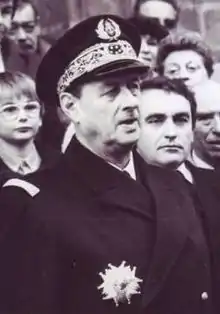 Philippe Henri Xavier Antoine de Gaulle (born 28 December 1921) is a French retired admiral and senator. He is the eldest child and only son of General Charles de Gaulle, the first president of the French Fifth Republic, and his wife Yvonne.[1] As of 2022, he is the only living child of De Gaulle.