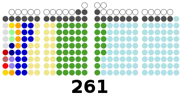 In the ongoing 18th Congress, there are 304 seats in the House of Representatives. The Constitution states that the House "shall be composed of not more than 250 members, unless otherwise fixed by law," and that at least 20% of it shall be sectoral representatives. There are two types of congressmen: the district and party-list representatives. At the time of the ratification of the constitution, there were 200 districts, leaving 50 seats for party-list representatives.