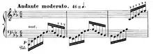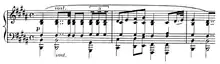 The third movement, in C minor, is subtitled "Airs Slovaques", alluding to the ersatz Slovak-like dance tune Massenet uses throughout.[4] The brief 2/4 section towards the end evokes the virtuosic passages of Liszt's Hungarian Rhapsodies, before returning to the main theme, perpetually accelerating into tumbling passages in the piano and flamboyant outbursts in the orchestra. Massenet adds triangle and glockenspiel in this movement to augment the exotic flavor of this movement.