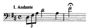 - Andante - Allegro assai- The piano concerto opens with a Wagnerian horn solo that fades to light strings, a soft piano melody, and more strings before breaking into the main theme of the piece. The horn is prevalent throughout, as are the strings, before concluding in D Major.