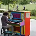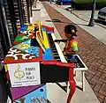 The annual Pianos for Peace Festival takes place in Atlanta over a two-week period where painted pianos are placed in public spaces and parks of the city for anyone to play.[4] Afterward, the pianos are donated to schools, community centers, hospitals, nursing homes and other organizations in need.[5] Pianos for Peace volunteer artists contribute to year-round outreach programs that reach various under-resourced communities throughout Metro Atlanta.