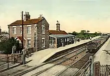 With the full opening of the line to Grosmont in 1865, four out and back services to Whitby per day were worked along the Battersby line.[6] The timetable from 1906 shows that the station had five stopping services each way on both lines; the services south went to Northallerton and the services on the line to Stokesley originated in Stockton and ran through to Whitby.[7] By 1922, this was down to four services on the Battersby line, and by the time of the closure of that line to passengers in 1954, the service ran to only two trains per day through Picton.[8]