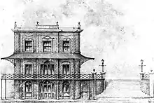 Patronage was boosted when the Adelaide and Glenelg Railway, which became the Glenelg tram line, went into service on 2 August 1873,[3] bringing in holidaymakers and customers[4] who had leisure time and spending money but did not own a horse and carriage. In 1876 the building was enlarged by another ten rooms and additional bathing facilities added.[5] The Holdfast Bay railway line gave a further boost to tourism in the area from 1880.