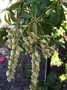 The mountain fetterbush is less subject to damage from the Azalea lacebug that often infests the related Pieris japonica.