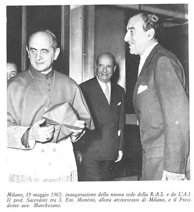 He promoted the installation of new powerful computers for the management of the company and the move of its Milan's headquarters from its previous location in via Manzoni 38, to a new building in Corso Italia 23, now the Italian headquarters of Allianz Group. The new building, planned by architects Giò Ponti and Piero Portaluppi, was inaugurated by the then archbishop of Milano Cardinal Montini, later Pope Paul VI on May 19, 1962. [4] [5]