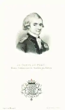 Du Buat came from a noble family and was born in a manor at Buttenval, Tortisambert in Normandy. He was educated at the Royal School of Engineering in Mézières in 1750 and became a military engineer at the age of 17. He began his first work in the construction of canals of the Lys and the Aa. He became a chief engineer in 1773. In 1786 he established through experiments a relationship between the velocity of flow of water through a pipe of a known radius and inclination which he extended then to flow in open canals.[1][2]