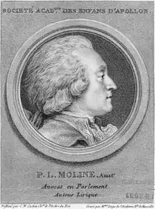 Pierre-Louis Moline (c. 1740 – 20 March 1820)[1] was a prolific French dramatist, poet and librettist. His play La Réunion du six août was one of the longest-running patriotic pieces during the time of the French Revolution with 52 performances at the Paris Opéra. He also wrote the epitaph for the tomb of Jean-Paul Marat. However, he is best remembered today for having adapted Calzabigi's libretto for Gluck's Orphée et Euridice (a reworked version of his Orfeo ed Euridice).