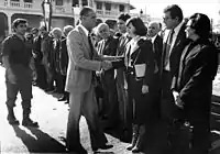 The foundation of the Syrian Social Nationalist Party by Antun Saadeh in 1932 was the trigger for the establishment of the Kateb Party, since the former actively tried to influence Lebanon towards the Syrian interests, leading to direct challenge for Lebanese nationalists.[5] The founders of the Kataeb Party were young, French-educated and middle-class professionals who committed to independent and Western-oriented Lebanon.[5] Charles Helou, who later served as Lebanon's President from 1964 to 1970,[12] was one of the founders. By the time of his presidency, however, Helou was no longer a party member, and Gemayel unsuccessfully opposed him in the presidential election of 1964.