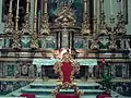 The interior hosts two paintings, including the Discovery of the True Cross by St Helena, by Luca Giordano in the third chapel to right, including a Deposition; a Holy Family (1617) by Battistello Caracciolo. The large chapel of the right transept has altarpieces by Giacomo Farelli, depicting the Birth and Death of the Virgin. It houses a Exposition of Dead Christ by Angels by Crescenzo Gamba. The ceiling canvases, painted by Marulli and Annella di Massimo, were removed in the past centuries.[1]