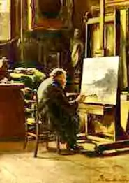 Originally, he painted in a very strict Dutch Romantic style, but later turned more toward a type of atmospheric Impressionism.