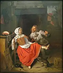 In his biographical sketch of Roestraten, Houbraken relates a popular anecdote that his wife Adriaentje as a baby once defecated on Adriaen Brouwer, who was a young pupil of Frans Hals at the time and had been asked to babysit. When this happened, Brouwer promptly pulled down his pants and did the same to the baby. When Mrs. Hals came in and asked what he was doing, he responded that they were shitting each other.[2][3]