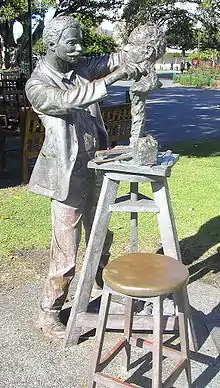 Born in Bisceglie in the province of Bari, he moved to Sydney with his fisherman father at the age of 8. After initial training at the New South Wales Academy of Art, he furthered his study of sculpture and drawing in Naples, before returning to Fremantle with his father in 1898. Later that year, he completed his first commission – a bust of Sir John Forrest that now stands in the main entrance hall of Parliament House in Perth. His 1902 statue of Alexander Forrest was the first such statue of a prominent public figure to be completed in Perth. He also created the imposing figure which stood atop the seven-storey AMP Chambers at the corner of St George's Tce and William St, which was completed in 1915, but demolished in 1972.