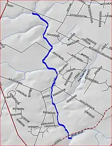 Pike Run starts at 40°27′19″N 74°39′4″W,[1] near the intersection of Route 206 and Belle Mead-Griggstown Road. The stream does not have a specific source. One source is at the eastern edge of the Sourland Mountains, while another branch passes through the Pike Brook Country Club(now the Mattawang Golf Club)from its origins on the northeastern edge of the Sourlands. Cruser Brook joins it, and it flows south and joins Back Brook and Pine Tree Run. It then crosses River Road and drains into Beden Brook at 40°25′9″N 74°38′22″W.[1]