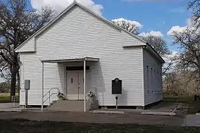In 1838, Thomas J. Pilgrim received a Republic of Texas land grant in Gonzales County, Texas. A lake[5] and a settlement on this land were called "Pilgrim."[6] In addition, there were three schools that were part of the Pilgrim Creek School District in the 1880s: 1) Burnett School (established in 1875 and named from another family which had come to the area); Salt Creek School (established in 1878, named for the salt flats in the area); and Lake Grove, (a school then only for blacks established in 1883).[7] The Pilgrim Presbyterian Church and the Pilgrim Cemetery were also named for Thomas J. Pilgrim. A Recorded Texas Historic Landmark was placed on the road attesting to the history of Pilgrim.[8]