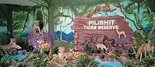 Pilibhit forests area is a home for the striped cats, tigers, bears, and many species of birds. A proposal, created in 2005, to make a home for the endangered cats in Pilibhit forests was sent to the government of India in April 2008.[2] Pilibhit Tiger Reserve was declared in September 2008 based on its special type of ecosystem with vast open spaces and sufficient feed for the elegant predators.[3]