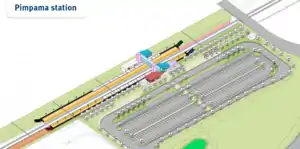 The planned location for Pimpama station is off the Old Pacific Highway, near the Pimpama City Shopping Centre. The station will be integrated with other modes of public transport, and is planned to feature connections with pedestrian and bicycle paths. The station concept design currently includes space for 330 car park bays.[2]