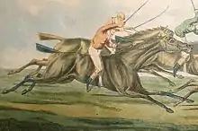 ![]() Engraving of Pindarrie (foreground) running in the 1820 Derby | |