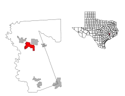 The western boundary of the town is formed by Clear Creek which flows from north to south. U.S. Route 290 Business on either side of FM 359 is part of the northern town limit. Cochran Road from north of Brumlow Road south to Betka Road is the eastern boundary. The southern boundary is formed by Betka Road and an irregular line running west to Clear Creek.[7]