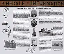The Verde Trail, General Crook's military trail from Fort Apache to Camp Verde built in the late 19th century, passed through this area. A mile marker for the trail is located just north of the Marreta B. Thomas covered bridge (located on the north end of town on the main road into Pinedale from AZ 260). It is the post with a V (chevron) attached.
