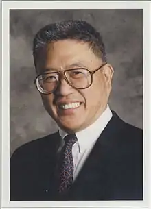 Tom died of pancreatic cancer in July 1995—three years before construction of the park began.[6] During a Chinatown Chamber of Commerce meeting held in March 1998, the Riverside Park Advisory Council suggested renaming the park in honor of Ping Tom,[4] the driving force behind its creation.[7] The request was approved on August 3, 1998, and the park was renamed Ping Tom Memorial Park. The park was dedicated and officially opened by Chicago Mayor Richard M. Daley during a ceremony on October 2, 1999.[4] In 2005, the CADC and friends of the Tom family commissioned sculptor Liao Huilana to create a bronze bust of Ping Tom. The bust was dedicated and installed at the park on October 22, 2005.[4][8]