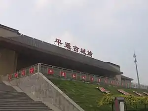 Pingyaogucheng railway station (Chinese: 平遥古城站; lit. 'Pingyao Ancient City railway station'), is a railway station of Datong–Xi'an Passenger Railway that is located between Houji Village and Ducun Village, Pingyao County, Jinzhong, Shanxi, China and about 8 km (5 miles) from Pingyao railway station and 10 km (6 miles) from the Ancient City.