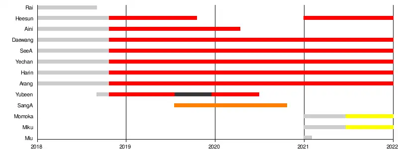 | Rai (라이) | Park Yu-na (박유나) | vocalist | Predebut | 2018 | |