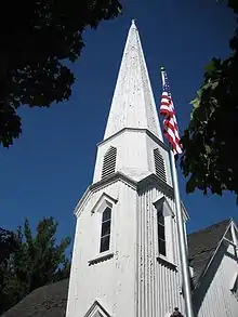 The Pioneer Gothic Church was built by a Presbyterian congregation in the village of Dwight, Illinois, United States, in Livingston County, in 1857.[2][3] In 1860, Prince Edward of Wales visited Dwight on a hunting expedition for wild birds and attended a church service at the Pioneer Gothic Church.[3] Between 1869 and 1891 Dwight experienced four major fires, all of which the wooden church survived.[2] The building served as a church and a township hall for Dwight Township, it is operated by the Dwight Historical Society.[4]
