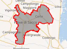 Piove di Sacco is a comune (municipality) in the Province of Padua in the Italian region Veneto, located about 25 kilometres (16 mi) southwest of Venice and about 20 kilometres (12 mi) southeast of Padua. As of 31 December 2004, it had a population of 18,019 and an area of 35.6 square kilometres (13.7 sq mi).[3]