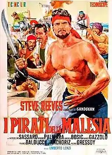 The Pirates of Malaysia is a 1964 swashbuckler directed by Umberto Lenzi and starring Steve Reeves as Sandokan the pirate. This film was a sequel to Reeve's 1963 film Sandokan the Great, also directed by Lenzi.[1] Malaysian rebel, Sandokan, with his group of renegades, tries to thwart an evil British general from forcing the good Sultan Hassim to resign in favor of the Imperial crown.[1]