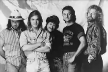 ![]() Promotional picture of Pirates of the Mississippi, early 1990s. From left: Dean Townson, Bill McCorvey, Jimmy Lowe, Pat Severs, Rich Alves | |