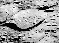 By convention these features are identified on lunar maps by placing the letter on the side of the crater midpoint that is closest to Pirquet.