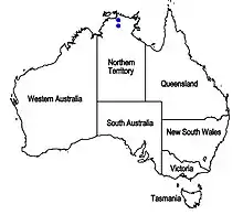 This pityrodia occurs in Arnhem Land, near the East Alligator River, about 10 km (6 mi) south-west of Oenpelli in the Kakadu National Park.[2][3]
