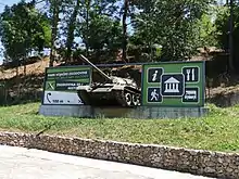 The museum's exhibits mainly date from the late WWII era and the Cold War, the timeframe of the former Socialist Federal Republic of Yugoslavia.[2][3] The core collection consists of a large number of armored vehicles and artillery; there is also a small aviation collection, with five fixed-wing aircraft and two helicopters.[4] The museum's most popular exhibit is the Zeta, an ex-Yugoslav Una-class infiltration submarine.[5]