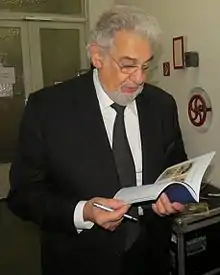Plácido Domingo has made hundreds of opera performances, music albums, and concert recordings throughout his career as an operatic tenor. From his first operatic leading role as Alfredo in La traviata in 1961, his major debuts continued in swift succession: Tosca at the Hamburg State Opera and Don Carlos at the Vienna State Opera in 1967; Adriana Lecouvreur at the Metropolitan Opera, Turandot in Verona Arena and La bohème in San Francisco in 1969; La Gioconda in 1970; Tosca in Royal Opera House, Covent Garden in 1971; La bohème at the Bavarian State Opera in 1972; Il trovatore at the Paris Opéra in 1973 and Don Carlo at the Salzburg Festival in 1975,[1] Parsifal in 1992 at the Bayreuth Festival; and the list continues until today; the same role is often recorded more than once.[2]