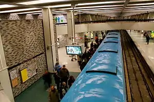 Place-des-Arts station is a Montreal Metro station in the borough of Ville-Marie, Montreal, Quebec, Canada.[3] It is operated by the Société de transport de Montréal (STM) and serves the Green Line. The station opened on October 14, 1966, as part of the original network of the Metro.