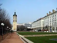 On the Place Antonin-Poncet, there is the bell tower of the old Hôpital de la Charité. The hospital, designed in 1622 by the Jesuit architect Étienne Martellange, was destroyed in 1934. The bell tower, built in 1665-66 by J. Abraham,[4] was the sole monument retained. At the time, it was the second largest hospital in Lyon after the Hôtel-Dieu de Lyon and was more of a hospice than a hospital.[3]