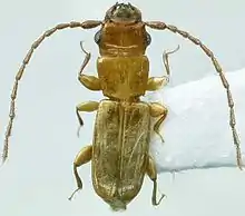 Placonotus is a genus of beetles in the family Laemophloeidae. There are 40 currently recognized species, known from all continents except Antarctica. Placonotus species are small (~2mm), elongate, flattened beetles, characterized by long filiform antennae, presence of a frontoclypeal suture, open anterior coxal cavities, and broadly rounded intercoxal process of abdominal ventrite III. Males have the 8th abdominal segment modified to form claspers used during mating.[1] Adults and larvae are found under dead bark, where they feed on fungi. Currently recognized species are: