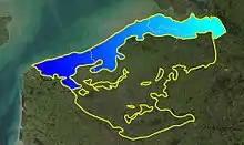 Maritime Flanders also refers to the French Westhoek region. It refers more specifically to the Blootland (Dutch for "naked land") or the Maritime Plain (French: Plaine maritime) including Dunkirk, Bourbourg, Bergues and Hondschoote.