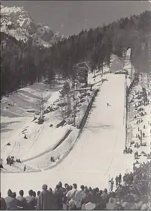 On 19 March 1949, International Ski Jumping Week has officially started with premiere jumps on the new Srednja Bloudkova K80 normal hill. Janez Polda was the longest with 77 metres.[1][2]