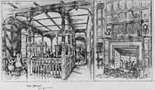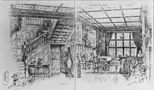 ![]() Interior showing the staircase gallery on the left and the hall fireplace on the right | |