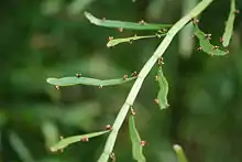 Platyclades are flattened, photosynthetic shoots, branches or stems that resemble or perform the function of leaves, as in Homalocladium platycladum and some cactus genera like Opuntia and Schlumbergera.