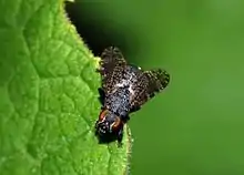 Adults are found on tree trunks and foliage and are attracted to flowers, decaying fruit, excrement, sweat, and decomposing snails.[2][3] Larvae are found on fresh and decaying vegetation, carrion, human corpses, and root nodules, particularly in the genus Rivellia, which has economic implications for legume crops.[4] Larvae from the remaining genera are either phytophagous (eating plant material) or saprophagous (eating decomposing organic matter). Some are predatory on other insects and others have been found in human lesions, while others are of minor agricultural significance.
