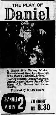 Play of Daniel is a 1961 Australian TV play based on Play of Daniel. It was broadcast from the crypt of St Mary's Cathedral in Sydney.[4]