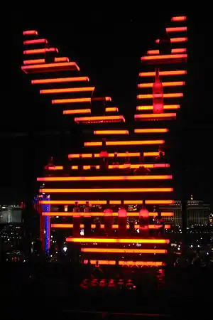 On October 6, 2006, Playboy opened a new Playboy Club in Las Vegas, Nevada. The new club at The Palms, with its prominent neon bunny head, had casinos, bars, and a restroom with pictures of Playmates on the walls.[19] The club closed in June 2012.[20]