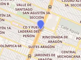 Plaza Aragón is an at-grade station on Line B of the Mexico City Metro system.[2][3] The station was opened on 30 November 2000.[4] It is located in the median of Avenida Carlos Hank González in the Colonia Rinconada de Aragón neighborhood in Ecatepec, State of Mexico adjacent to Mexico City.[2]
