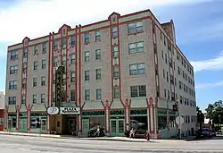 Plaza Hotel is a historic hotel building located at Trenton, Grundy County, Missouri. It was built in 1929–1930, and is a five-story, Art Deco style reinforced concrete building. The building measures approximately 10,912 square feet (1,013.8 m2) It has a pre-cast, concrete block exterior, concrete roof and floors.[2]: 5