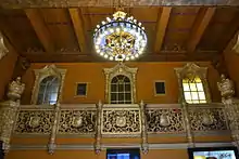 The majority of the interior detailing has been lost since the building's demise as a cinema, although remnants remain in the McDonald's restaurant that is now in sections of the original foyer.[6] These include sections of the beamed ceiling, typical Spanish motifs and coloured and stencilled floral motifs on the ceiling.[7] Sections of the polychrome stencilled ceilings in the auditorium remain.